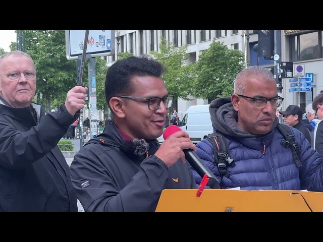 On 17.5.2025 Monika Gärtner-Engel, main coordinator of ICOR (revolutionary world organization with 60 organizations from 4 continents) speaks at an ICOR rally under the Linden. She was accompanied by Bata ba Bayemi - ICOR Africa, Mayobanex Mueses - ICOR America, Jeroen Toussaint - IcCOR Europe and Suwash GC - ICOR Asia. The organization on site had been the subject of fierce debate in the run-up to the event. The Berlin police banned any rally directly in front of the Brandenburg Gate (Pariser Platz). But: Palestine Solidarity cannot be banned. Monika Gärtner-Engel accuses: the German state supports the Israeli government, which is drowning the soil of Gaza in blood. The conclusion that we in Germany must draw from Hitler's fascism is: ‘Never again genocide’. All 60 organizations of the ICOR have committed themselves to protest on this day and to collect money for the reconstruction of the Al Awda hospital. Freedom for Gaza! Freedom for Palestine!